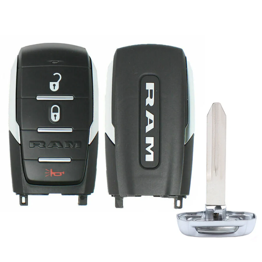 2019 – 2024 RAM 1500 Smart Key 3 Botones Fob (Bloqueo, Desbloqueo y Pánico) FCC# OHT-4882056 – 434 MHz- Lados Plateados